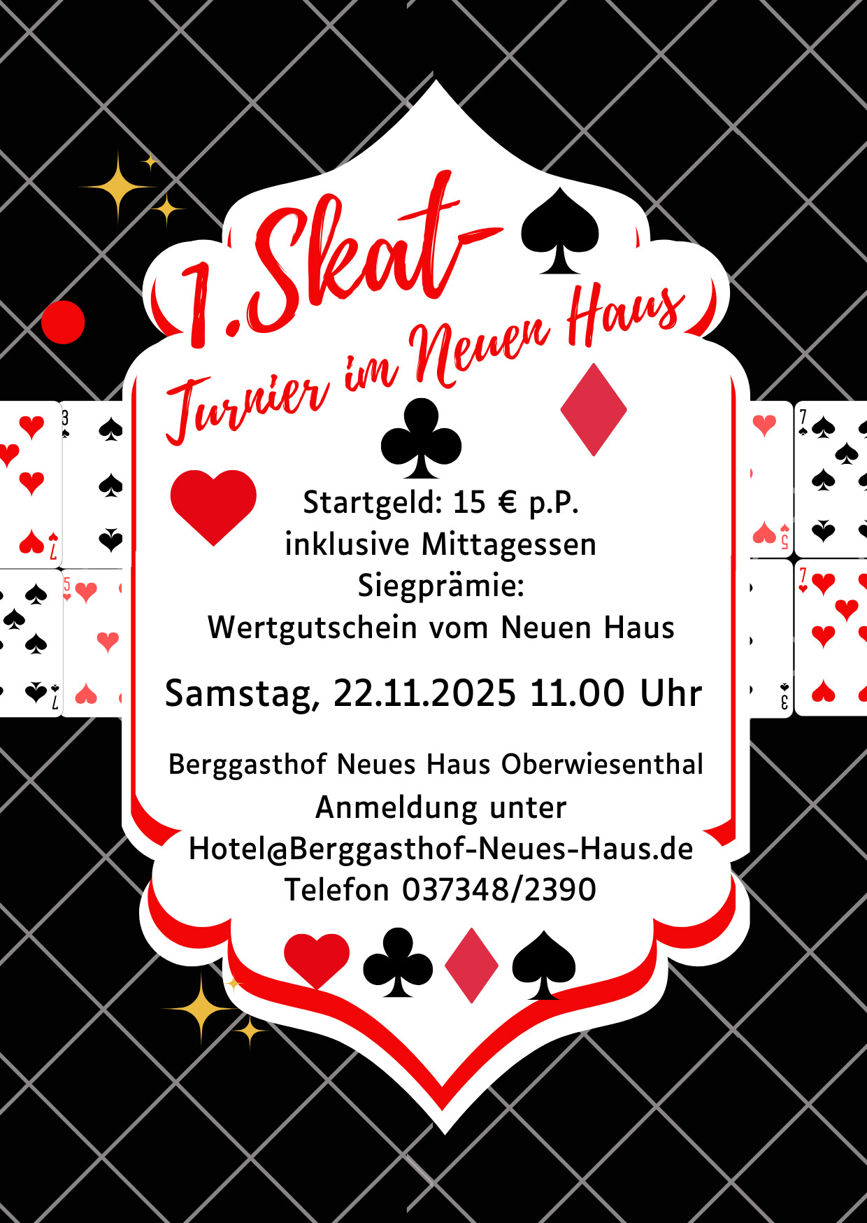 Anmeldung: 037348 2390 oder per Mail an hotel@berggasthof-neues-haus.de